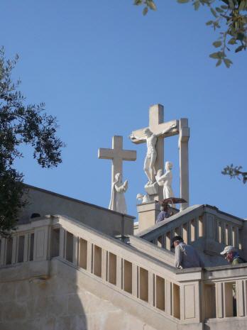 Den Engel, der mit der rechten Hand auf die Erde zeigte und mit lauter Stimme rief: Buße, Buße, Buße! Und wir sahen in einem ungeheuren Licht, das Gott ist: ‚etwas, das aussieht wie Personen in einem Spiegel, wenn sie davor vorübergehen‘ und einen in Weiß gekleideten Bischof – ‚wir hatten die Ahnung, dass es der Heilige Vater war‘. Wir sahen verschiedene andere Bischöfe, Priester, Ordensmänner und Ordensfrauen einen steilen Berg hinaufsteigen, auf dessen Gipfel sich ein großes Kreuz befand aus rohen Stämmen wie aus Korkeiche mit Rinde. Bevor er dort ankam, ging der Heilige Vater durch eine große Stadt, die halb zerstört war und halb zitternd mit wankendem Schritt, von Schmerz und Sorge gedrückt, betete er für die Seelen der Leichen, denen er auf seinem Weg begegnete. Am Berg angekommen, kniete er zu Füßen des großen Kreuzes nieder. Da wurde er von einer Gruppe von Soldaten getötet, die mit Feuerwaffen und Pfeilen auf ihn schossen. Genauso starben nach und nach die Bischöfe, Priester, Ordensleute und verschiedene weltliche Personen, Männer und Frauen unterschiedlicher Klassen und Positionen. Unter den beiden Armen des Kreuzes waren zwei Engel, ein jeder hatte ein Aspergill aus Kristall in der Hand. Darin sammelten sie das Blut der Märtyrer auf und tränkten damit die Seelen, die sich Gott näherten.“